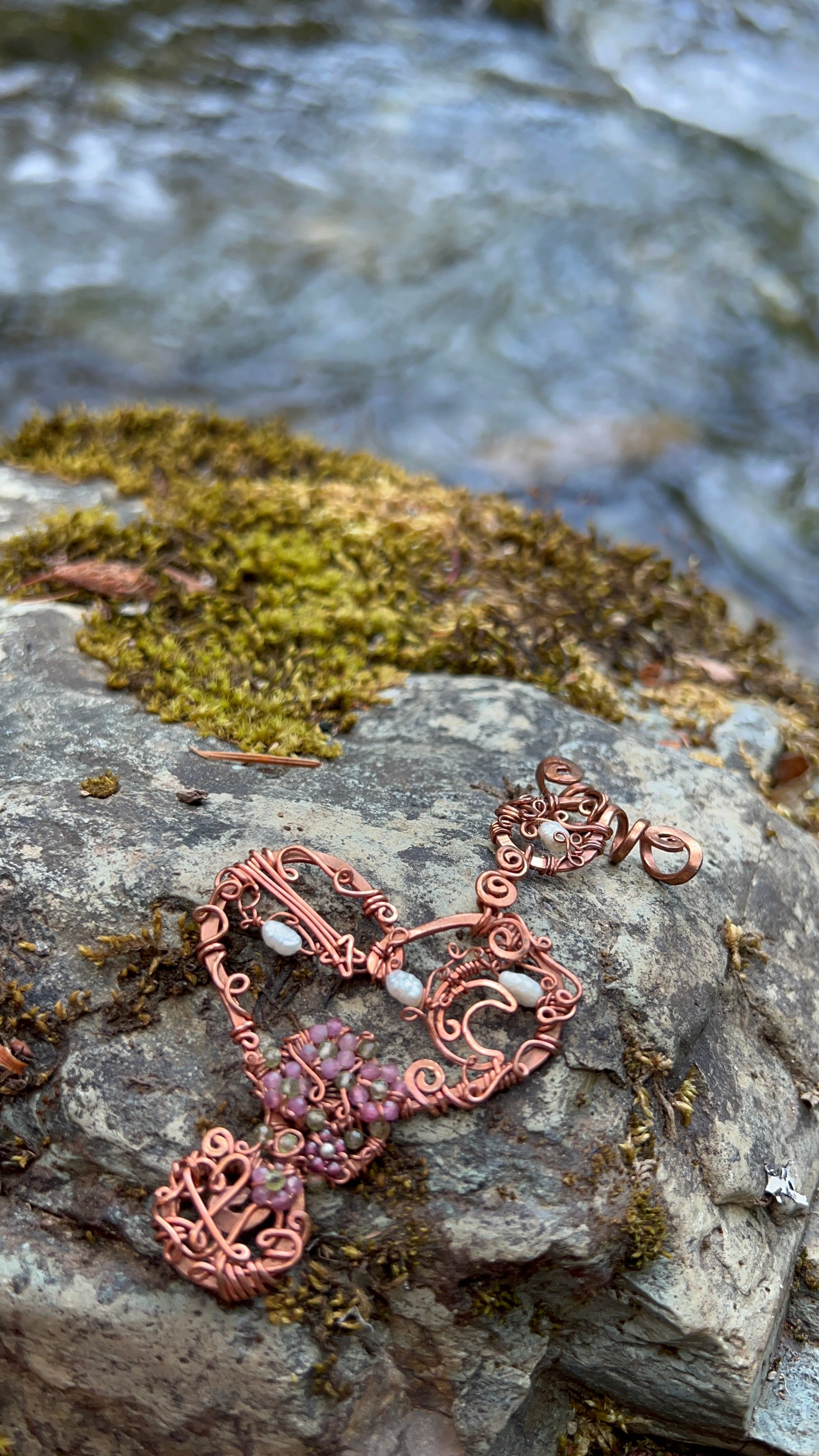 2. **Pink Tourmaline and Lavender Opal Heart**: $45